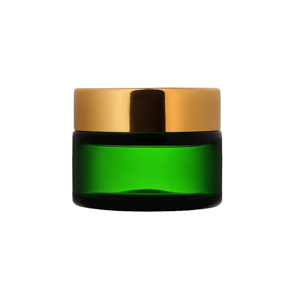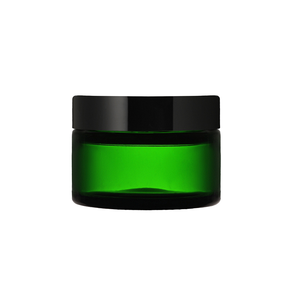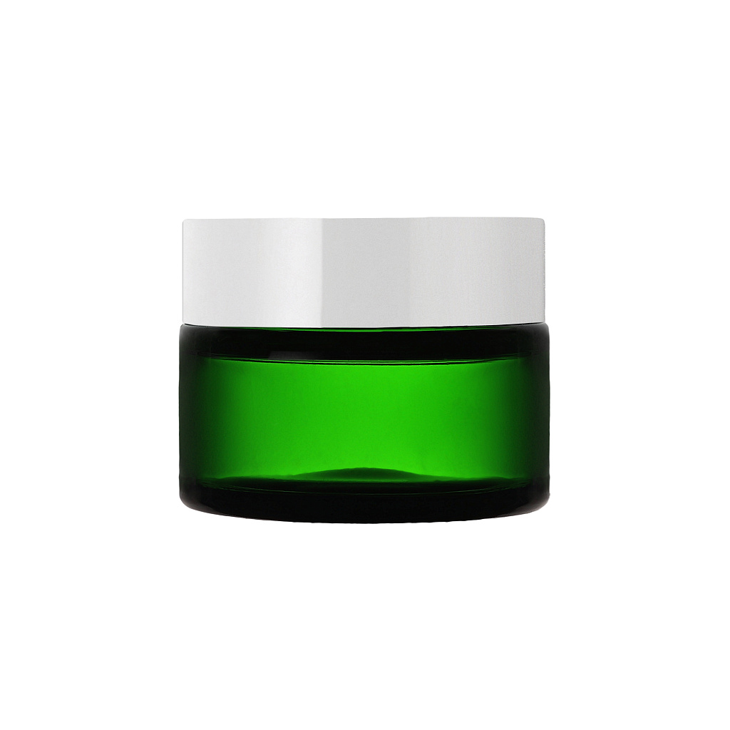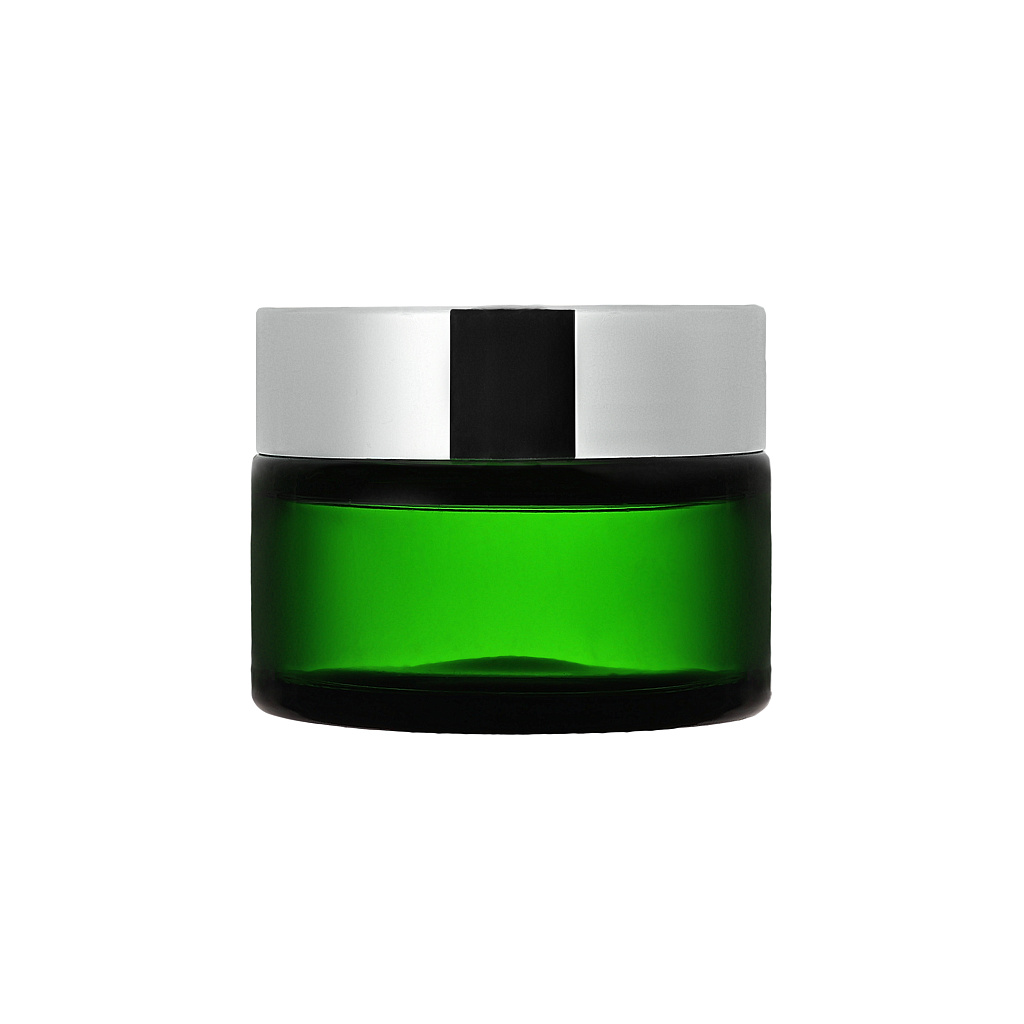Зеленая стеклянная банка 20мл для косметики с горлом 41,0мм, компактная и яркая.